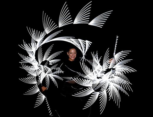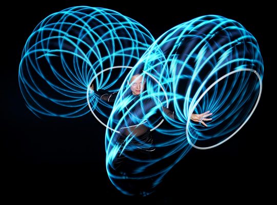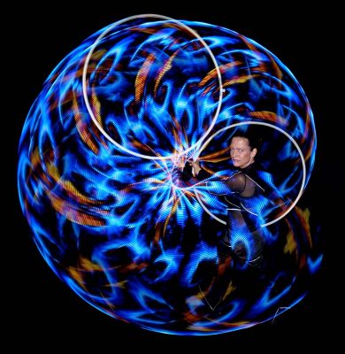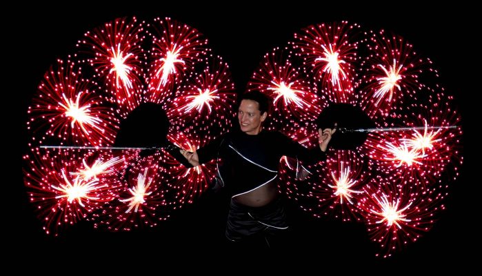 esteffania`Lichtshows sind einzigartig und perfekt inszeniert. Denn die Künstlerin programmiert und choreografiert ihre Shows selbst. Die verwendeten Requisiten sind exakt auf Musik und Artistik abgestimmt, wodurch faszinierende Muster und Lichtbilder entstehen.