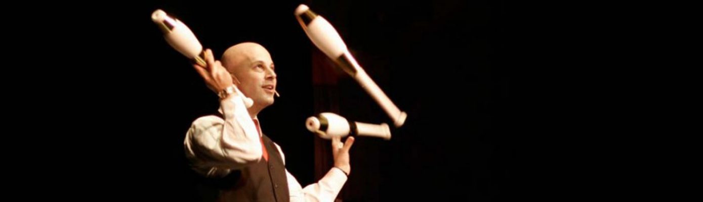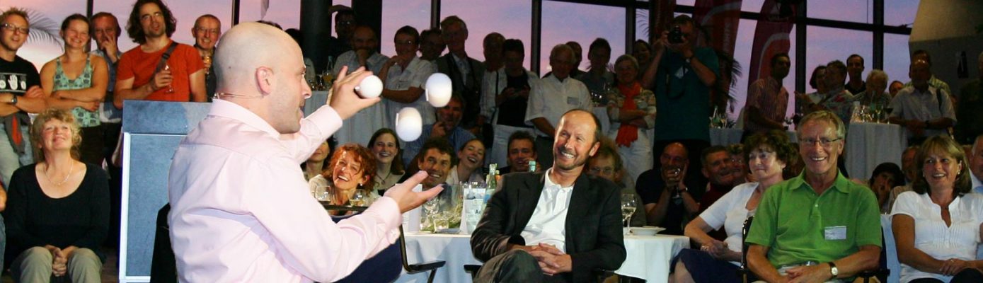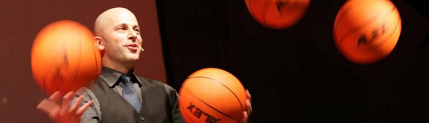 Jongleur Joram Seewi ist ein vielseitiger und preisgekrönter deutscher Künstler, der sich in den Bereichen Comedy, Jonglage und Moderation einen Namen gemacht hat. In seinen Comedy-Jonglage-Shows verbindet Joram Seewi auf einzigartige Weise hochkarätige Artistik mit intelligenter und niveauvoller Comedy. Seine Auftritte sind geprägt von Spontanität, Situationskomik und einem feinen Gespür für das Publikum. Er jongliert nicht nur mit klassischen Gegenständen wie Keulen und Bällen, sondern auch mit ungewöhnlichen Objekten wie Bowlingkugeln, Fußbällen oder Tennisschlägern.
