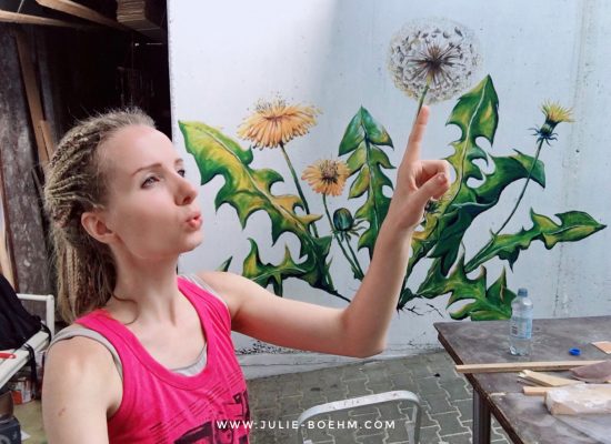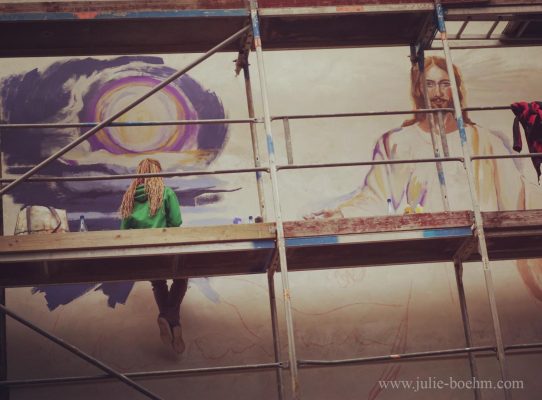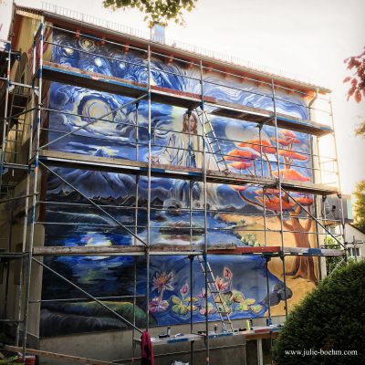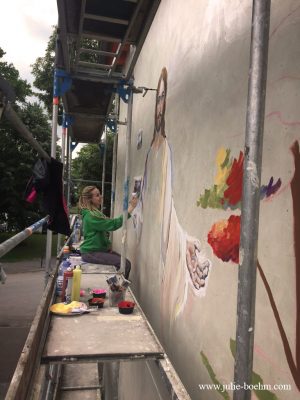 Ich bin eine freischaffende Künstlerin in den Bereichen Wandmalerei und bildende Kunst