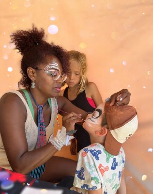 “Wo Kinderlachen erwünscht ist, bin ich da – mit Pinsel, Glitzer und ganz viel Freude!”