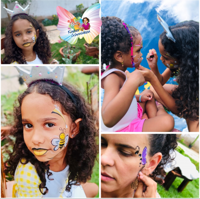 Kinderschminken für Geburtstage, Feste und Veranstaltungen, individuelle Motive nach Wunsch, Verwendung von hautfreundlichen und allergiegetesteten Farben. Hinweis: Alle Materialien sind speziell für Kinderhaut entwickelt. Sicherheit, Hygiene und Qualität stehen immer an erster Stelle!