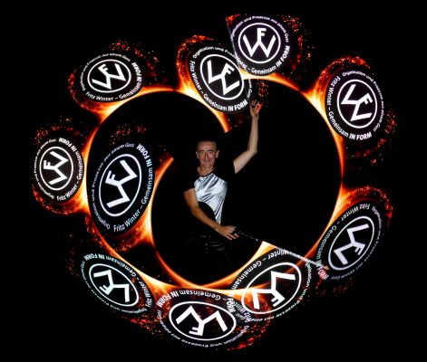 Die Show beinhaltet zwei Nummern bei denen ich mit speziellen LED-Requisiten Ihr Logo, Schriftzüge oder Schlagworte und weitere themenspezifische Grafiken in die Dunkelheit wirbeln kann. Diese Nummern werden individuell für Sie programmiert, sodass ich auch auf Ihre Schriftarten und Firmenfarben eingehen kann.